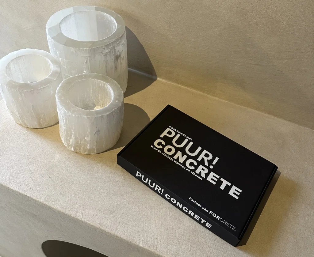 Concrete microcement terrazzo moet je ervaren. Daarom hebben we speciaal voor ons netwerk een PUUR! Stalenkit ontworpen. Deze bevat informatie & stalen voor een eigen professioneel advies.